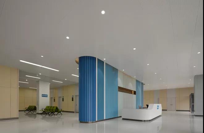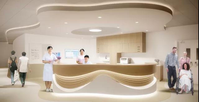 公共空间尊贵感体现首先在于设计选材,宜采用天然高档大理石、覆膜木纹铝复合板,纹理质感好,板幅大,品质感强;家具选择偏向于酒店化,提升空间档次感,整体色调温馨柔软,加强去医疗化的体验感;在门诊大厅、肿瘤中心门厅、体检门厅、电梯厅等区域,层高配合为3.8米以上,空间大气档次感强;在咨询、导诊台设无障碍区满足不同人群,提升服务体验感。